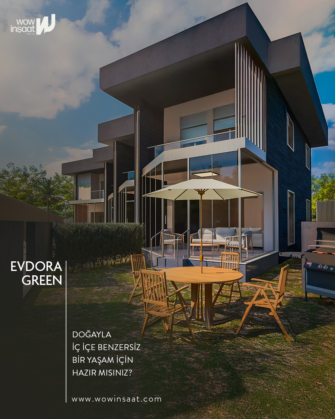 Evdora Green projesinden sahip olacağınız 1 adet Tabiat Evi ile 12 ay huzuru ve konforu yeşil ile iç içe yaşarken isterseniz Yazlık yada Kışlık olarak kalabalık misafirleriniz ile barbekü partisinin tadını çıkarabilirsiniz.